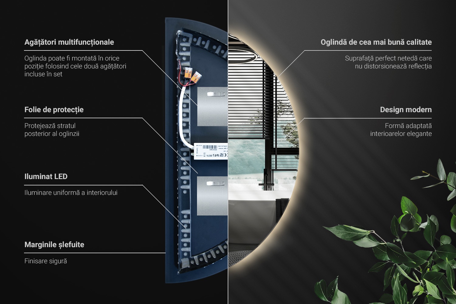 - _ Oglindă semicirculară cu LED accesoriu stilat